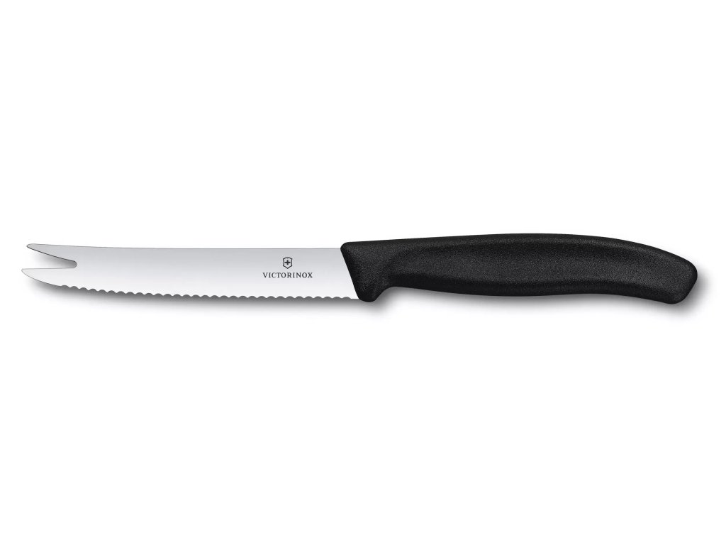 victorinox swiss classic cheese and sausage knife with fork tip 11 cm black