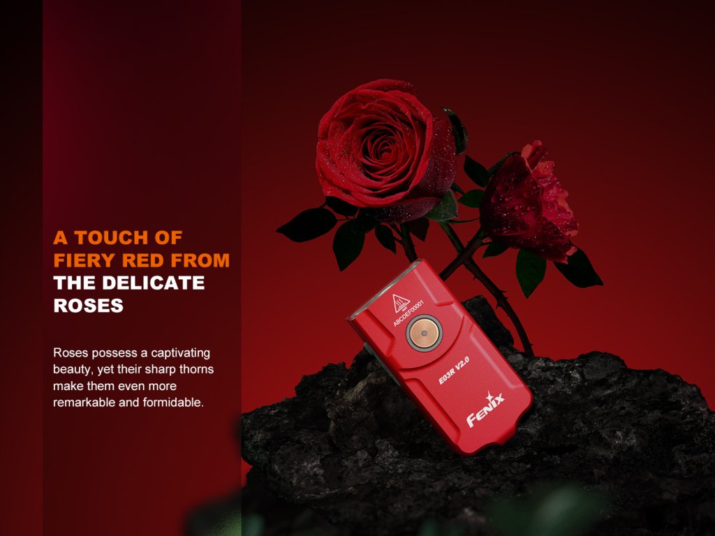Fenix ​​E03R V2.0 je nástupce úspěšné miniaturní dobíjecí svítilny, kterou lze nosit na klíčích nebo v kabelce. Navzdory minimálním rozměrům a váze pouhých 30 gramů nabízí vysoký světelný tok až 500 lumenů (ANSI) a dosvit až 90 metrů. Napájení zajišťuje integrovaný Li-pol akumulátor s kapacitou 400 mAh, který se nabíjí přes USB-C konektor. Svítilna nabízí čtyři režimy bílého světla a dva režimy červeného světla, přičemž maximální výdrž je až 30 hodin v nejnižším režimu.