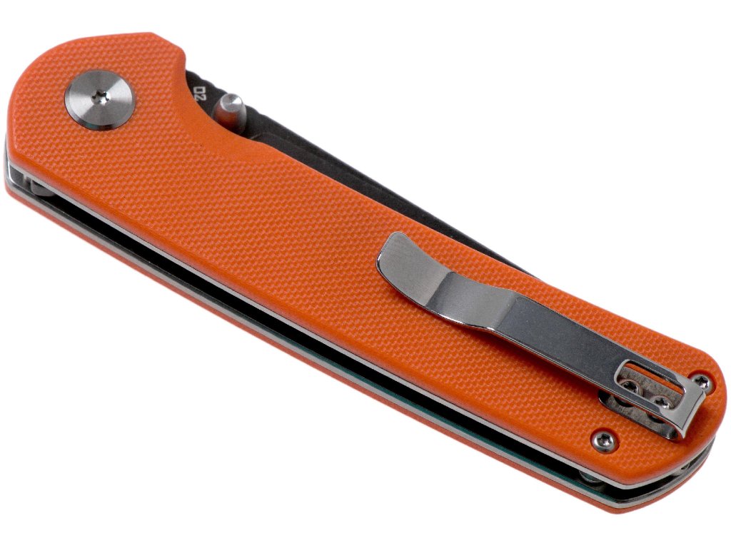 Rukojeť nože je vyrobena z oranžové G10, odolného kompozitního materiálu, který poskytuje pevný úchop i v náročných podmínkách. Texturovaný povrch rukojeti zajišťuje, že nůž pevně sedí v ruce, což zvyšuje bezpečnost a kontrolu při používání. Oranžová barva nejen přidává na estetice, ale také zvyšuje viditelnost nože, což je důležité zejména při outdoorových aktivitách.
