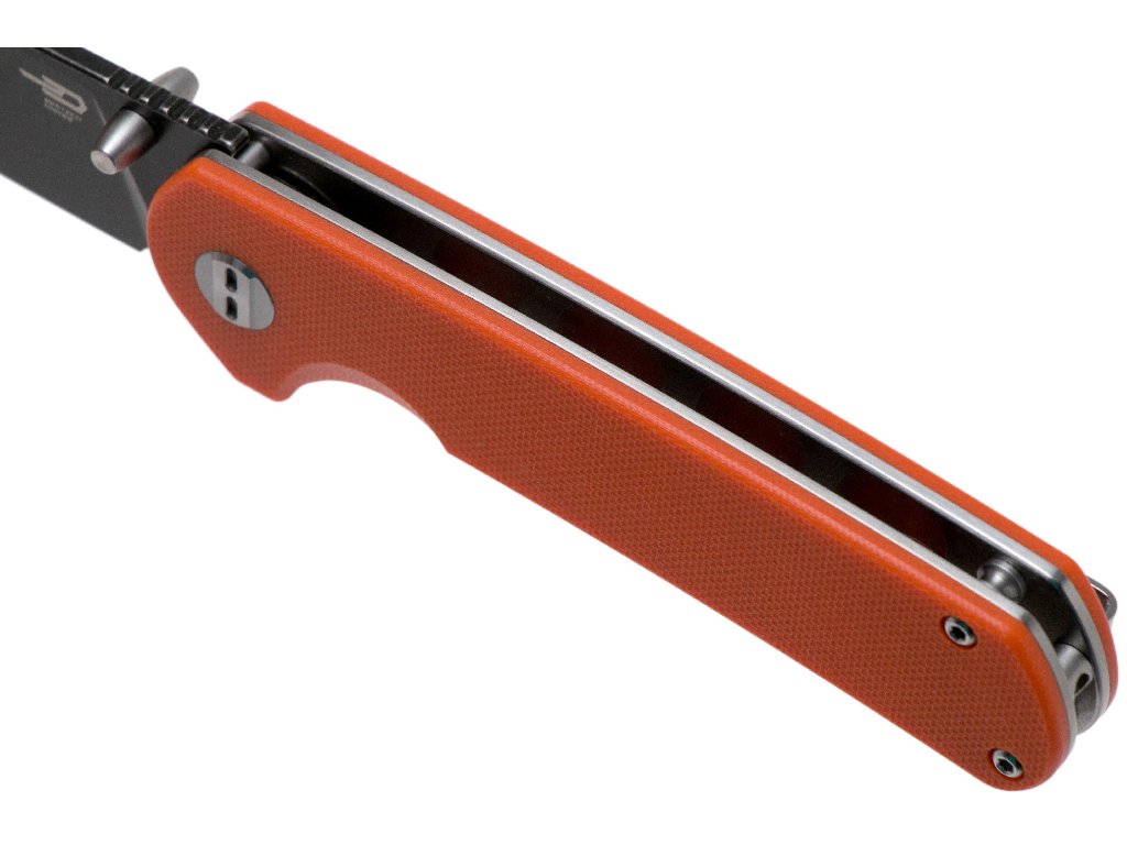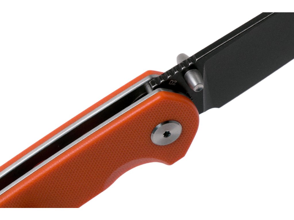 Rukojeť z oranžové G10 pro bezpečný a pevný úchop