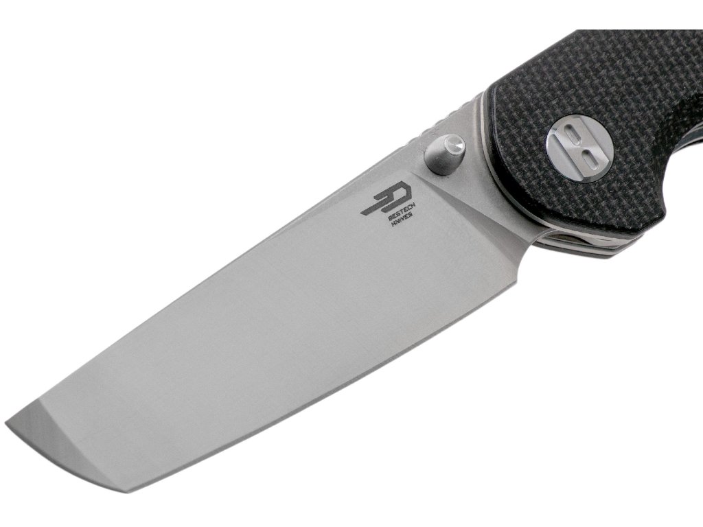Čepel nože Bestech Sledgehammer je vyrobena z vysoce odolné oceli D2, která je známá svou vynikající odolností vůči opotřebení a schopností dlouhodobě udržet ostří. Čepel s délkou 7,6 cm má tvar modifikovaného tanto a je vybavena plochým výbrusem a matnou povrchovou úpravou, která zvyšuje její odolnost vůči korozi a zároveň dodává noži elegantní vzhled. Čepel je uložena na keramických ložiskách, což zajišťuje snadné a plynulé otevírání.