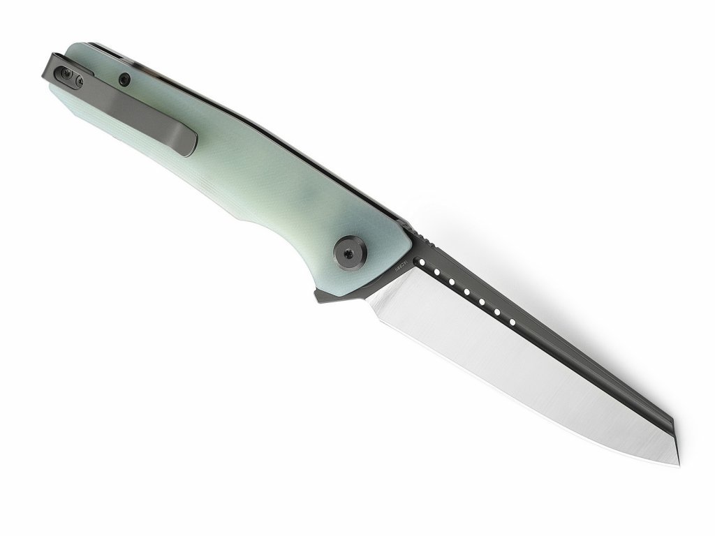 Rukojeť nože je vyrobena z nefritového G10, materiálu, který je lehký, odolný a poskytuje vynikající úchop. Textura rukojeti zajišťuje pevné a bezpečné držení, což je důležité při precizních úkonech. Nefritová barva přidává noži estetickou hodnotu a činí z něj atraktivní doplněk pro každodenní nošení.