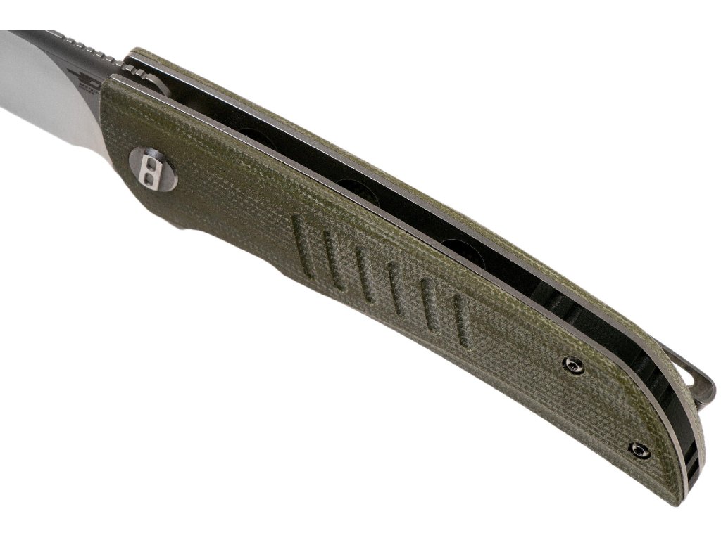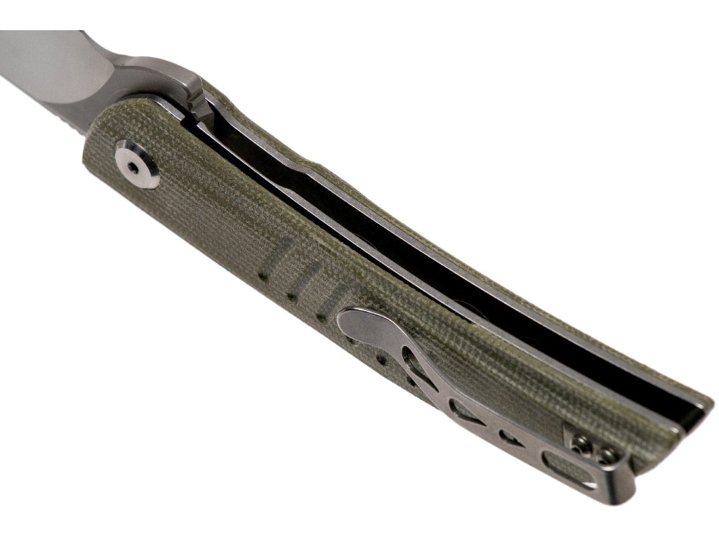 Rukojeť nože Swift je vyrobena ze zelené mikarty, která je známá svou odolností a pohodlným úchopem. Tento materiál je lehký a zároveň velmi pevný, což zajišťuje, že nůž je pohodlný na nošení a zároveň spolehlivý při použití.