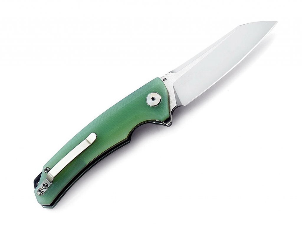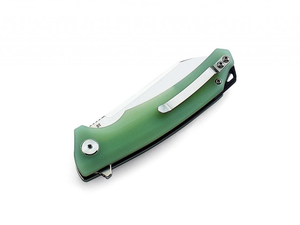 Rukojeť nože Bestech Texel je vyrobena z G10, odolného a lehkého materiálu, který zajišťuje pevný a pohodlný úchop. Transparentní zelený odstín přidává noži jedinečný vzhled. Nůž je vybaven ocelovým klipem na zavěšení, který umožňuje pohodlné a diskrétní nošení v kapse nebo na opasku.