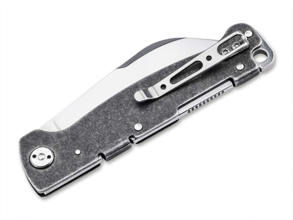 Böker Plus Atlas je praktický a spolehlivý kapesní nůž s rukojetí z nerezové oceli, která je zakončena stylovým tmavým stonewash povrchem. Jeho minimalistická konstrukce zaručuje vynikající odolnost, díky čemuž se tento kompaktní nůž stává ideálním společníkem v každé situaci.