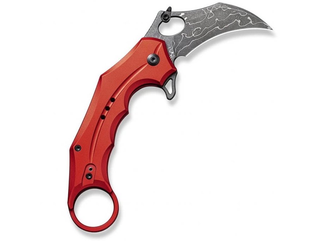 Rukojeť nože je vyrobena z hliníku v nápadné červené barvě s jemně texturovaným povrchem pro bezpečný úchop. S délkou 12,5 cm poskytuje pohodlí a jistotu při manipulaci. Rukojeť obsahuje také Tip-Up klip z nerezové oceli, který umožňuje pohodlné nošení nože.