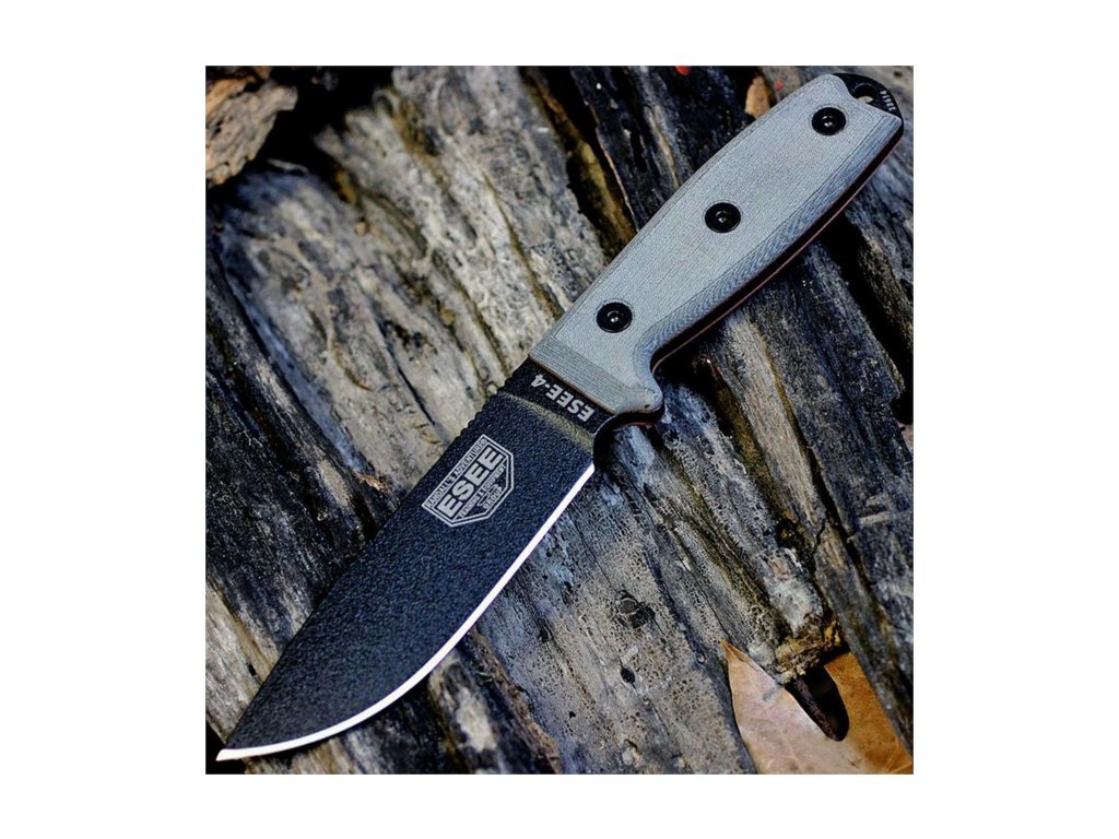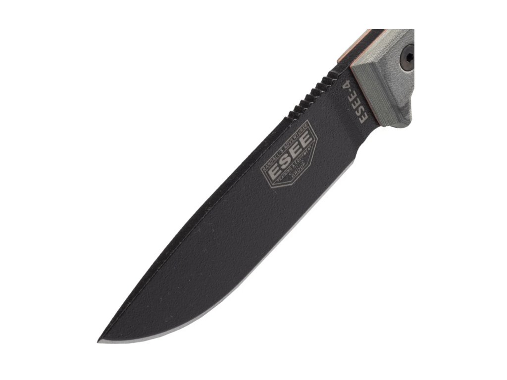 Čepel je zhotovena z vysoce kvalitní uhlíkové oceli 1095. I když tato ocel není nerezová, je chráněna odolným černým práškovým nástřikem, který zajišťuje dlouhou životnost při správné údržbě. ESEE 4P nabízí dostatečně velkou čepel, ale zároveň si zachovává kompaktní design, který nepřekáží. Pouzdro je vyrobeno z odolného materiálu Zytel a lze ho připevnit kovovým klipem na opasek. Součástí balení je také nosné poutko, které umožňuje připevnění pouzdra na MOLLE systém.
