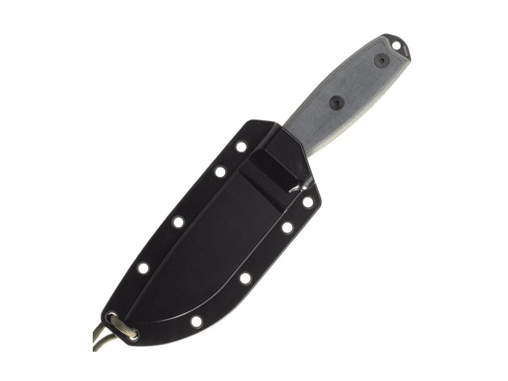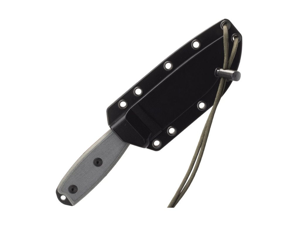 ESEE Model 4 patří mezi nejoblíbenější nože na přežití. Tento konkrétní model ESEE 4P je vylepšenou verzí klasického designu. Rukojeť je vyrobena ze šedé micarty, která dodává drsný povrch pro vynikající úchop i ve vlhkých podmínkách. Pro vyšší bezpečnost během používání je rukojeť vybavena záštitou na palec. Ideální pro aktivity v přírodě, při práci na chatě nebo při lovu. Na konci rukojeti je trn se zaobleným koncem a otvorem pro připevnění šňůrky.