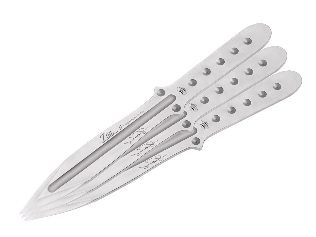 Vrhací nůž Magnum Ziel II navržený Johnem Baileym je ideální pro začátečníky i profesionály. Díky full tang konstrukci z nerezové oceli 420 je nož dobře vyvážen, což zaručuje, že každý hod bude potěšením. Drážky a prohlubně na noži jsou přesně navrženy podle Baileyho vzoru. S více než 40 lety zkušeností ve vrhání nožů, Bailey je odborník, který své znalosti publikoval v magazínech jako Blade Magazine a American Survival Guide. Set obsahuje tři vrhací nože a kombinované pouzdro.