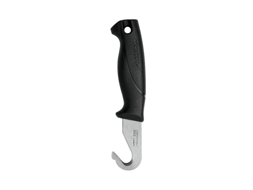 Rukojeť vyvrhovacího háku je vyrobena z odolného plastu, který zajišťuje pevný a protiskluzový úchop i v náročných podmínkách. Plastové pouzdro, které je součástí balení, poskytuje bezpečné uložení nože a ochranu čepele před zatupením. Tento nástroj je navržen tak, aby byl praktický a odolný i při dlouhodobém používání.