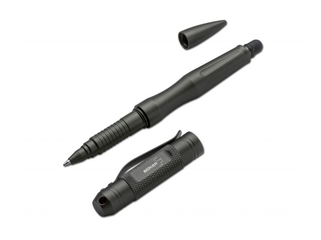 Böker Plus iPlus TTP Gray je taktické pero, které kombinuje funkčnost a moderní design. Disponuje gumovým hrotem pro použití na dotykových obrazovkách, který je bezpečně uložen pod zadním šroubovacím krytem. Přední kryt zakrývá klasický hrot pera, který je kompatibilní s náplněmi Parker velké kapacity nebo Fisher Space Pen.