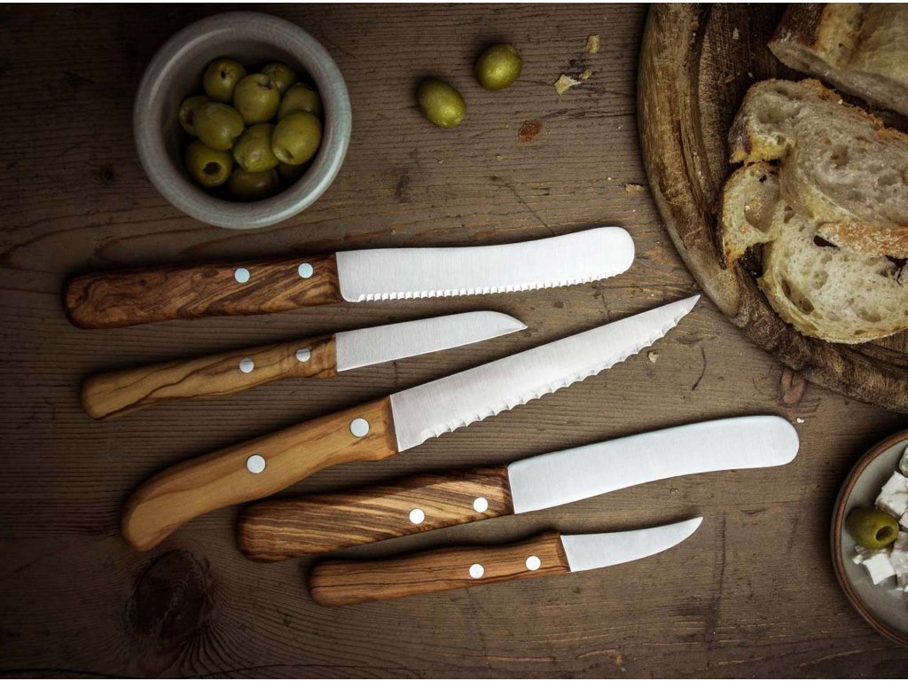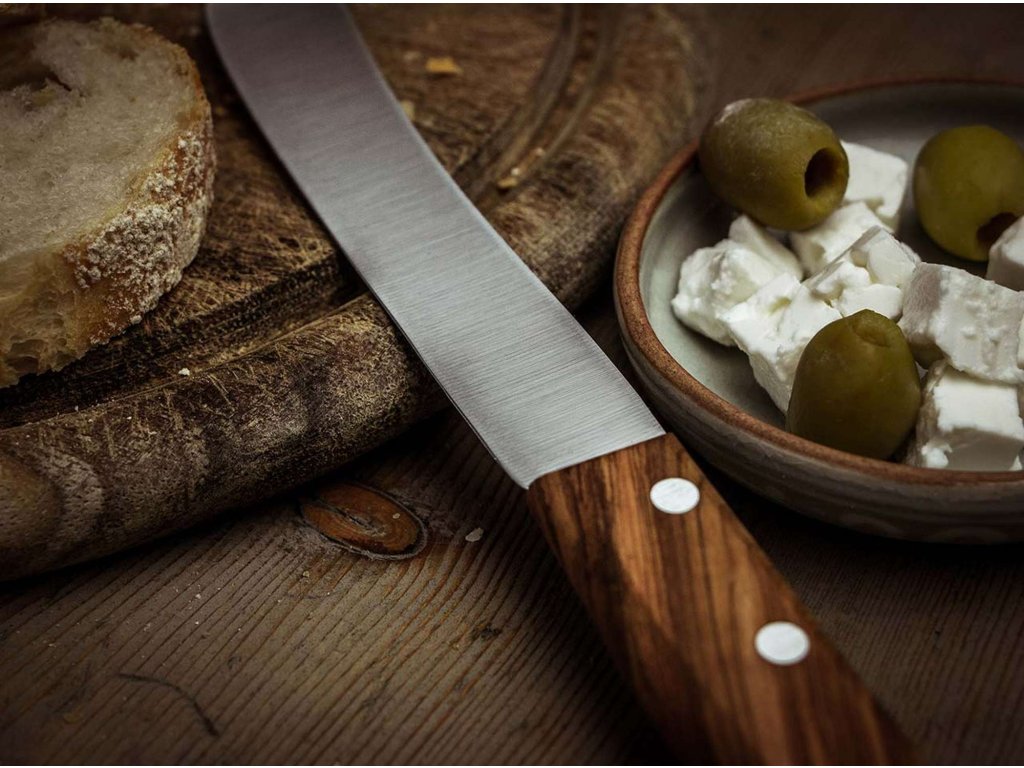 Rukoväte noža sú vyrobené z olivového dreva, ktoré poskytuje pohodlný a pevný úchop. Olivové drevo je známe svojou odolnosťou a jedinečnou štruktúrou, ktorá dodáva nožu prírodný a elegantný vzhľad.