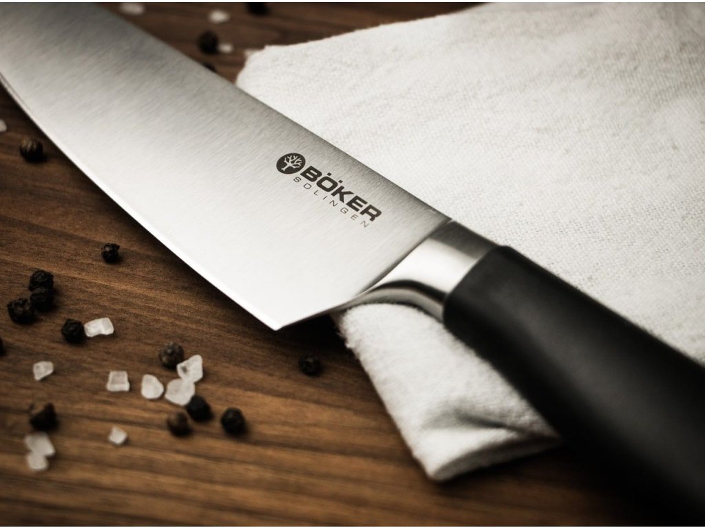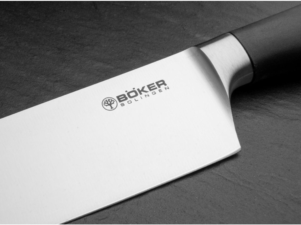 Böker Core Professional Chef's Knife je navrhnutý s využitím desaťročí skúseností oceľových predajcov z miest Trier, Wiesbaden, Münster a Lüneburg, ktorí si vybudovali vynikajúcu povesť vďaka svojej odbornosti a rozsiahlemu výberu. Spojením ich znalostí a takmer 150-ročnej tradície Böker Manufaktúry v Solingene vznikol nôž s dynamickými líniami, vynikajúcou manipuláciou a ohromujúcou reznou schopnosťou, odporúčaný poprednými predajcami.