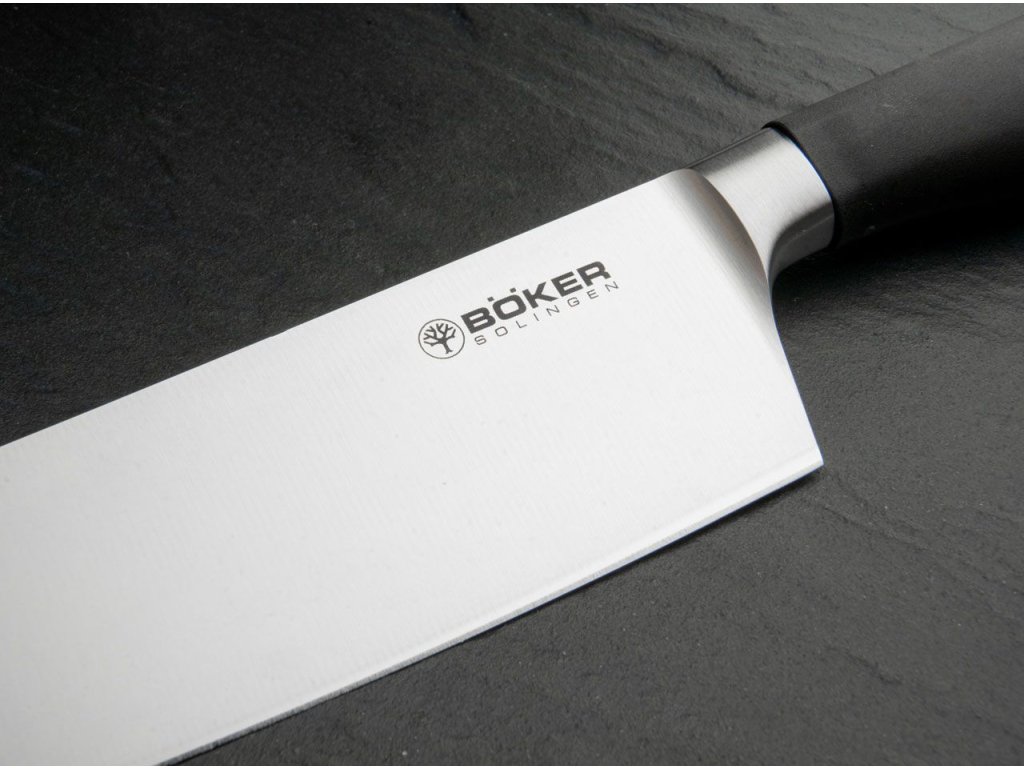 Böker Core Professional Santoku vznikol vďaka desaťročiam skúseností popredných oceľových predajcov z miest Trier, Wiesbaden, Münster a Lüneburg. Tieto mestá sú známe nielen svojimi historickými centrami, ale aj vynikajúcou povesťou v oblasti predaja oceľového tovaru. V spojení s takmer 150-ročnou tradíciou Böker Manufaktúry v Solingene vznikol nôž s dynamickými líniami, vynikajúcou manipuláciou a úžasnou reznou schopnosťou, ktorý odporúčajú poprední predajcovia.