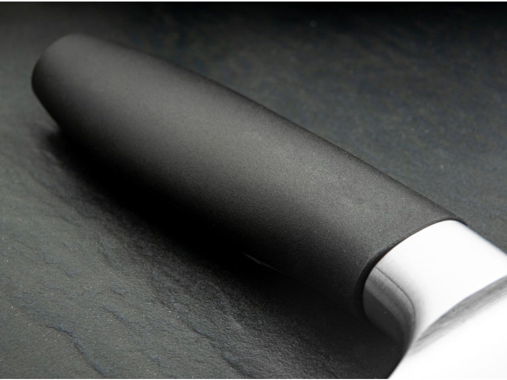 Každý nôž zo série Böker Core má jemne zaoblenú chrbticu, ktorá zvyšuje pohodlie a eliminuje nepríjemný tlak na ruku počas krájania. Kovaná opierka poskytuje bezpečné uchopenie a znižuje riziko pošmyknutia.
