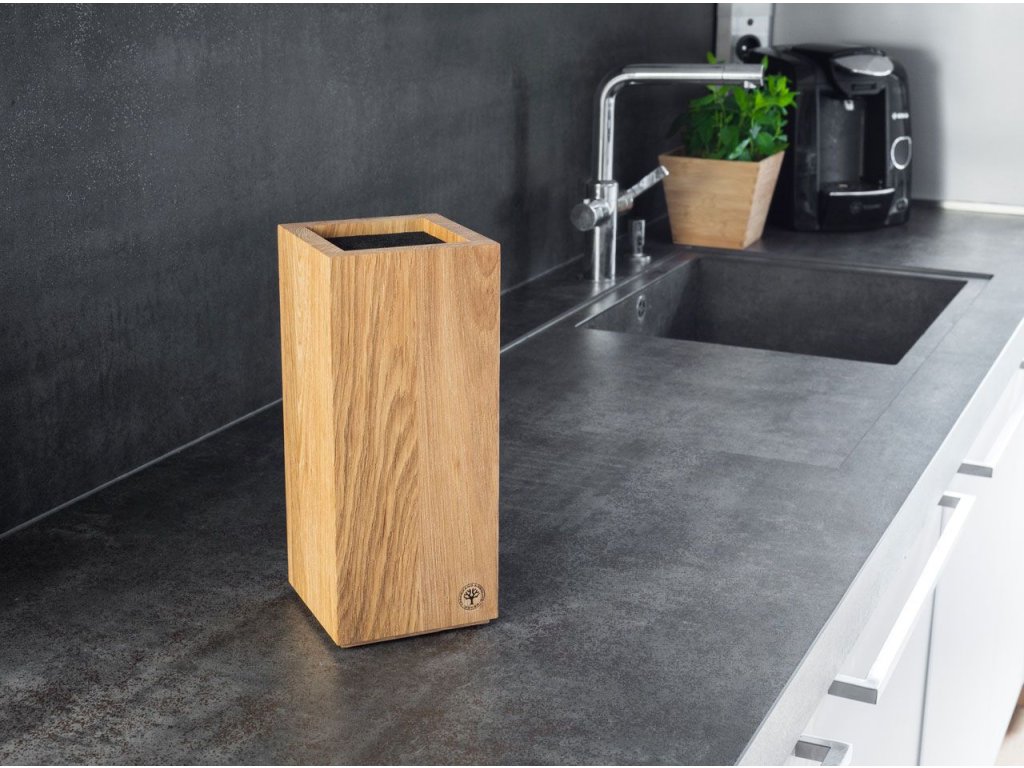 Stojan na nože Böker Square Oak premení vašu kuchyňu na moderný dizajnérsky kúsok. Tento vysoko kvalitný blok z masívneho dubového dreva zaručuje stabilné postavenie a vďaka subtílnej tieňovej medzere pôsobí, akoby sa vznášal nad kuchynskou linkou. Jedinečné vzory dreva robia každý stojan originálnym kúskom. Dubový blok bol navyše kartáčovaný, aby vynikla jeho nádherná textúra.