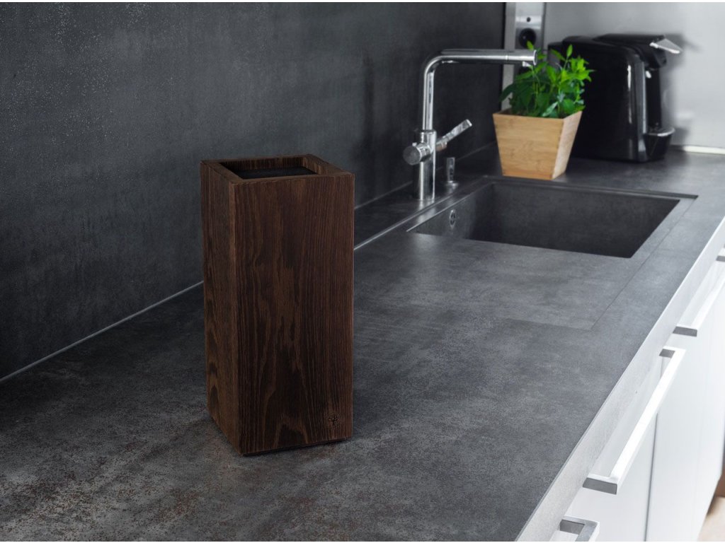Stojan na nože Böker Square Smoked Oak prinesie do vašej kuchyne luxusný dizajnérsky prvok. Tento vysoko kvalitný blok z údeného dubového dreva zaručuje stabilné postavenie a vďaka jemnej tieňovej medzere vytvára dojem, že sa vznáša nad kuchynskou linkou. Unikátne drevené vzory robia každý stojan jedinečným umeleckým kúskom.