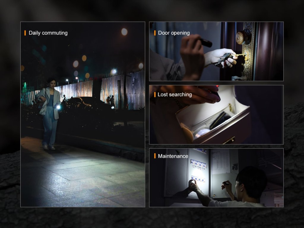 Táto malá baterka sa hodí pre každodenné použitie a je ideálna na pripevnenie na kľúče, nosenie vo vrecku, kabelke alebo batohu. Vysoká odolnosť voči vode a prachu (štandard IP68) zaručuje, že vás nesklame ani v náročných podmienkach.