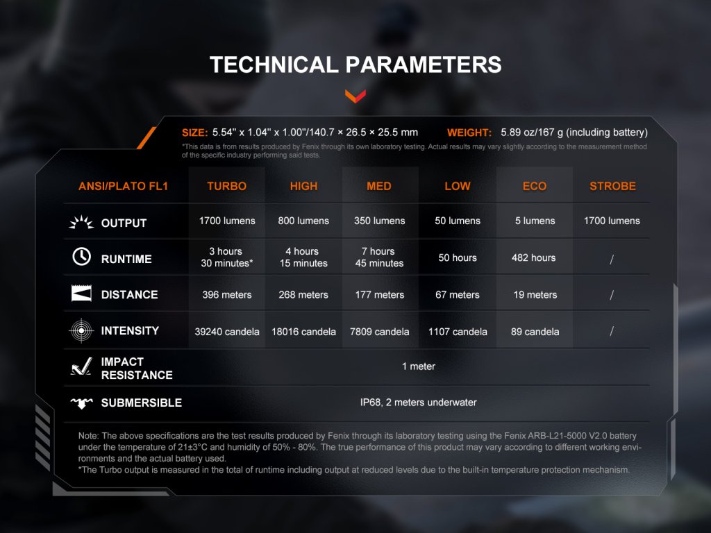 Parametre svietidla Fenix PD36R V2.0