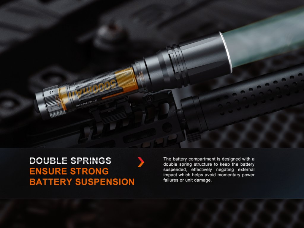• Ovládanie: Duálny taktický spínač na konci svietidla s funkciou okamžitého zapnutia/vypnutia.