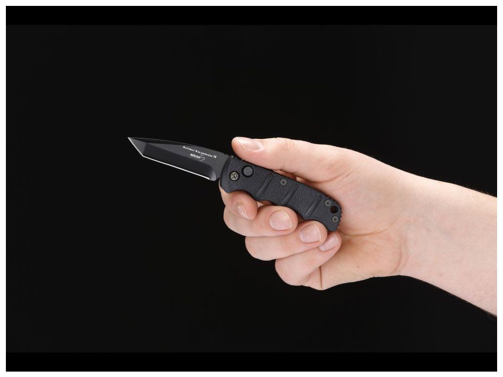 Čepeľ má tvar Tanto a je vyrobená z nerezovej ocele AUS-8, ktorá poskytuje vynikajúcu odolnosť proti opotrebeniu. Čierny povrch čepele zaisťuje minimálne odrazy a vysokú trvácnosť. Čepeľ je navyše vybavená posuvnou poistkou, ktorá zvyšuje bezpečnosť pri používaní spolu s tlačidlom pre otváranie.