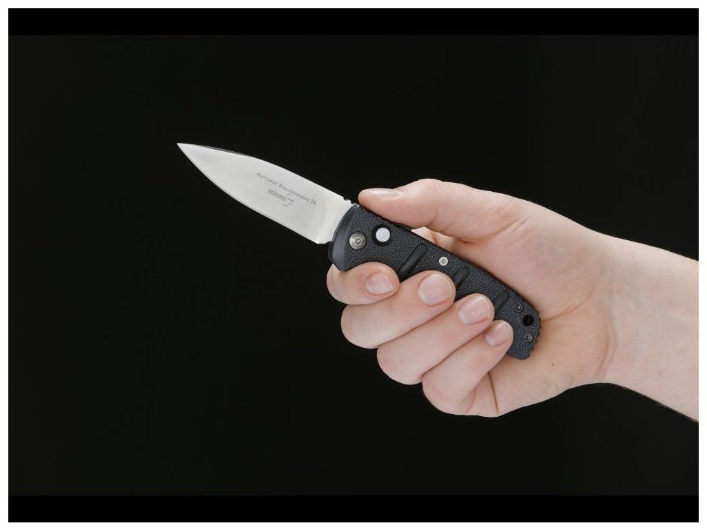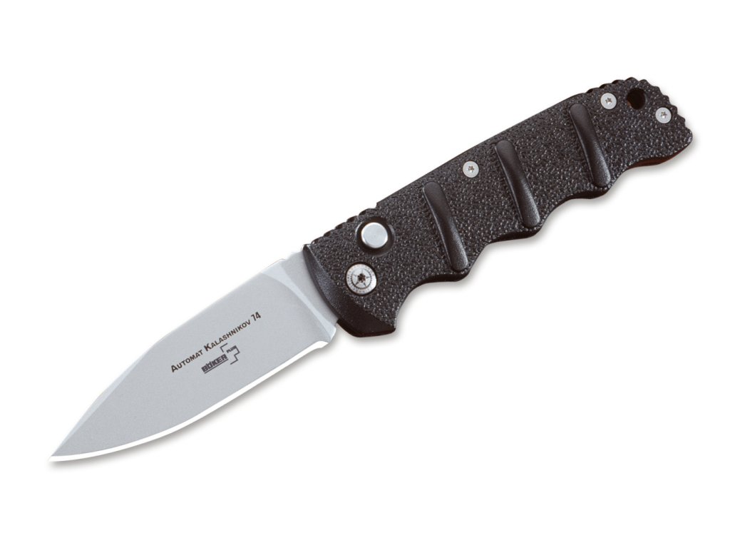 - Čierna hliníková rukoväť inšpirovaná bajonetom útočnej pušky AK-47