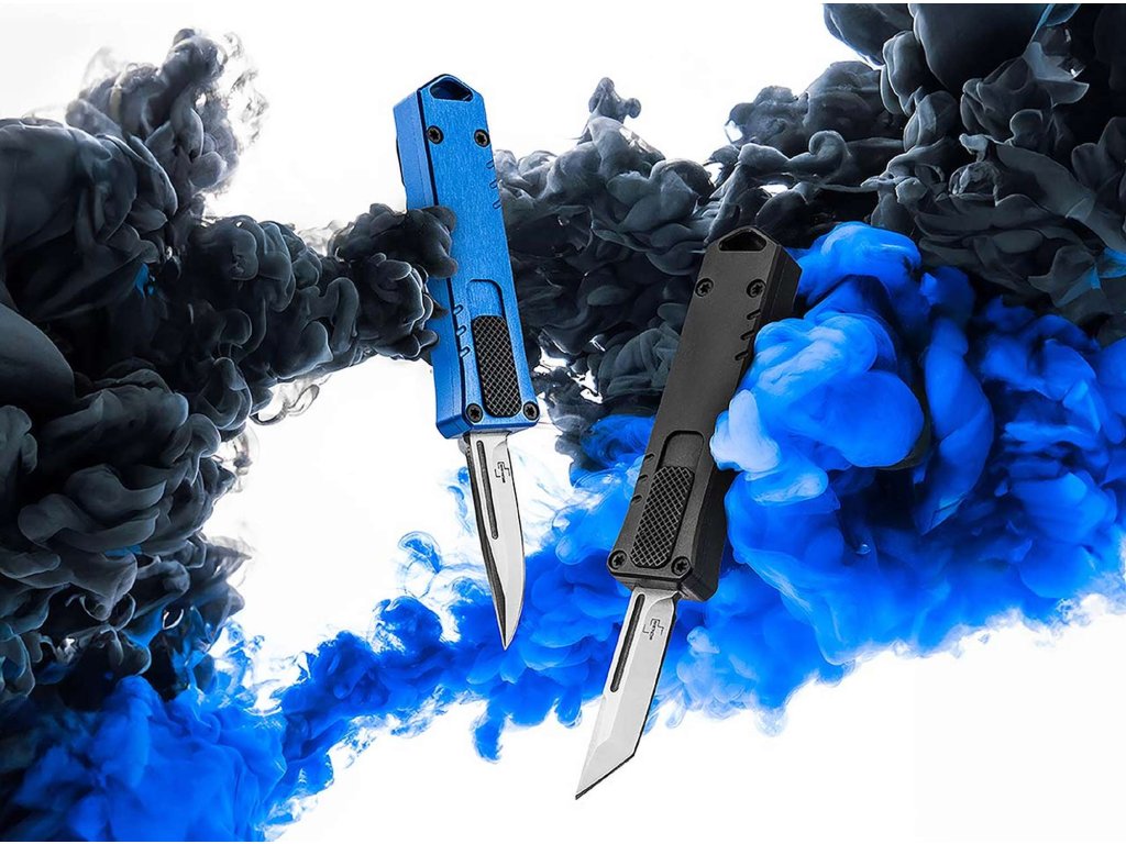 Kompaktný a legálny OTF nôž s modrou rukoväťou