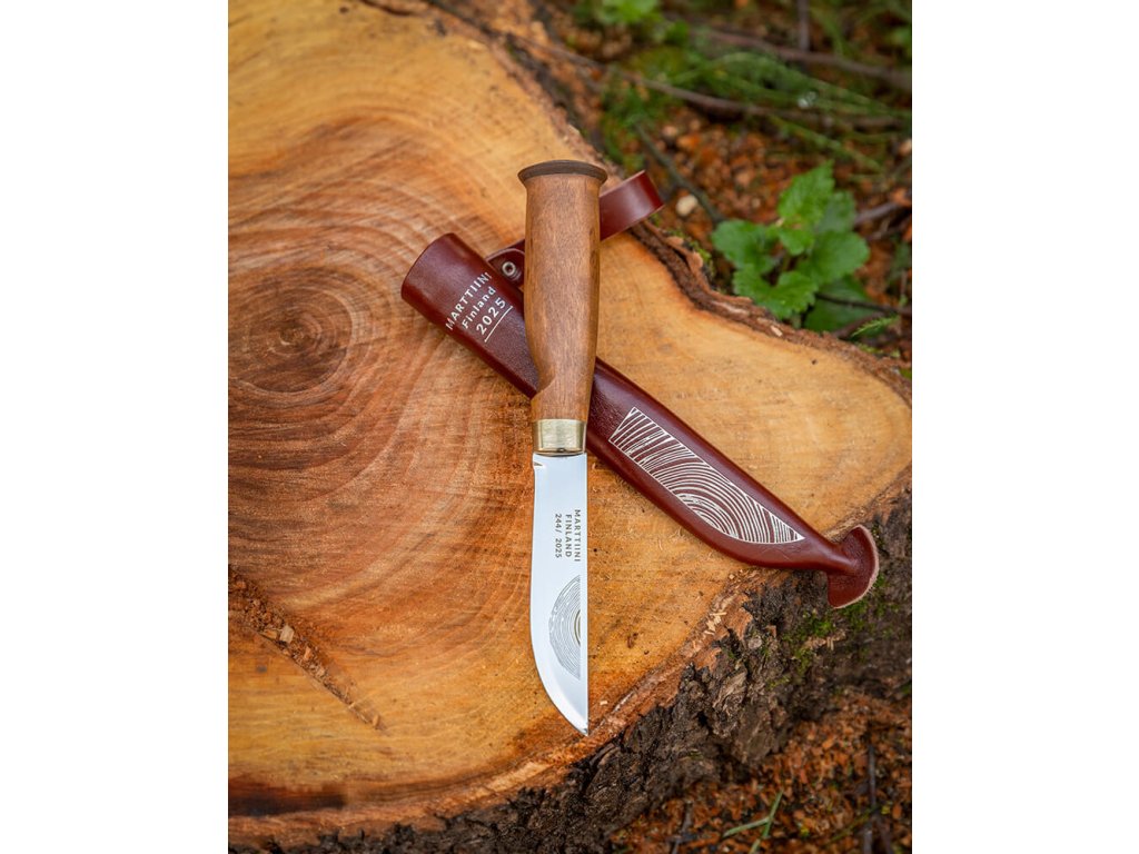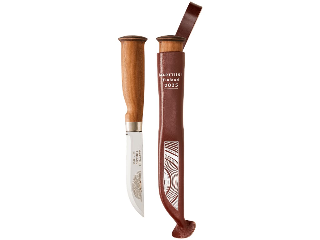 Marttiini Lusto Annual Knife 2025 – limitovaná edícia inšpirovaná letokruhmi stromov. Kombinuje nerezovú čepeľ, rukoväť z tepelne upravenej brezy a kožené púzdro. Exkluzívny zberateľský aj outdoorový nôž.