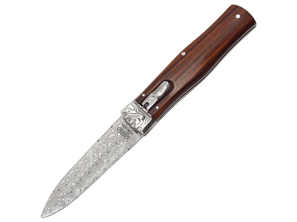 🐆 Mikov JAGUAR Cocobolo je luxusný automatický nôž s damaškovou čepeľou PMC27, očíslovaním a elegantnou rukoväťou z cocobola.