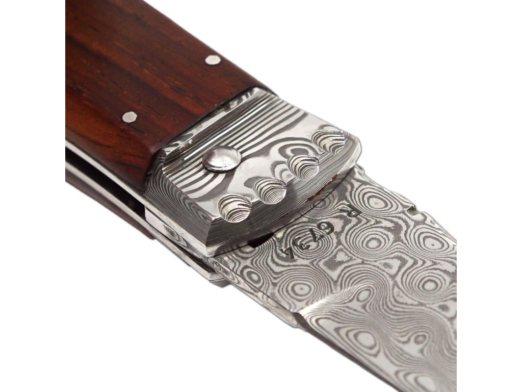 Kovanie aj poistná páčka sú taktiež z damašku, čo umocňuje celkový vizuálny aj funkčný dojem.