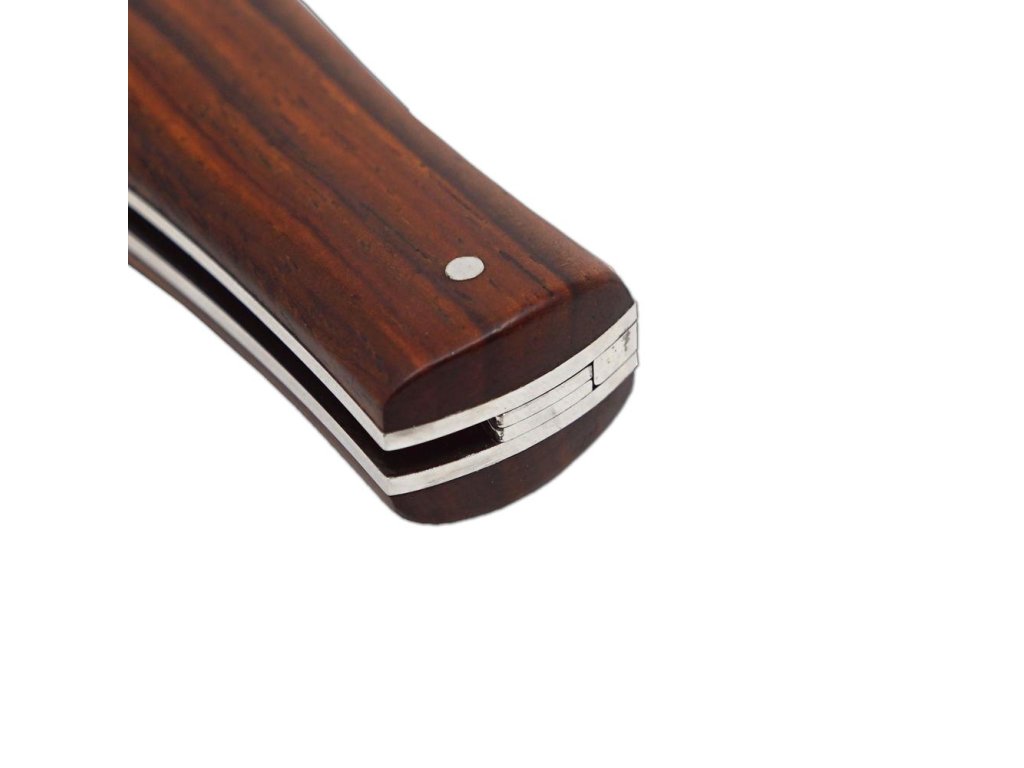 Ergonomická cocobolo rukoväť ponúka pohodlný úchop a luxusný vzhľad. Toto exotické drevo je známe vysokou hustotou, výrazným žilkovaním a prirodzenou odolnosťou.