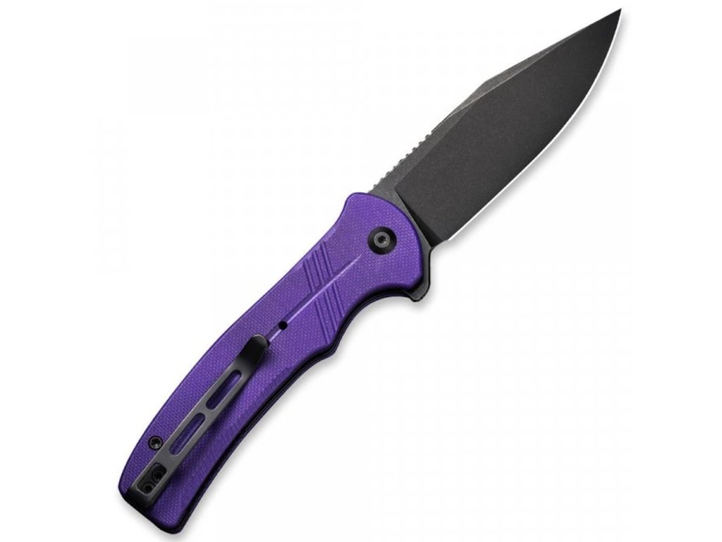 • 🟣 Rukoväť z G10 (Purple): Odolný a ľahký kompozitný materiál (sklolaminát viazaný živicou) v atraktívnej fialovej farbe. Poskytuje výborný úchop vďaka jemnej textúre a ergonomickému tvarovaniu.