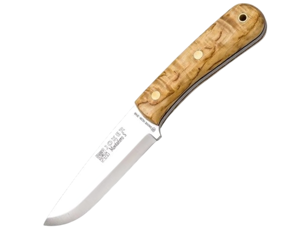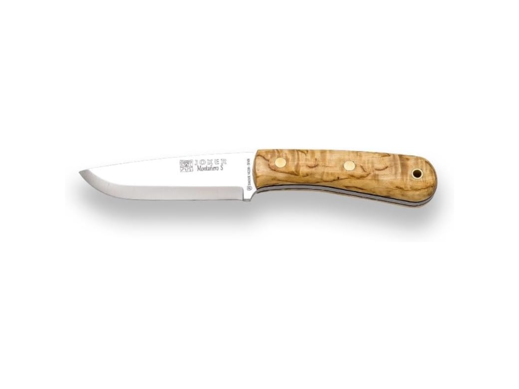 Nôž Joker MONTANERO Bushcraft CL135 – bushcraftový nôž z ocele Sandvik 14C28N s rukoväťou z kučeravej brezy