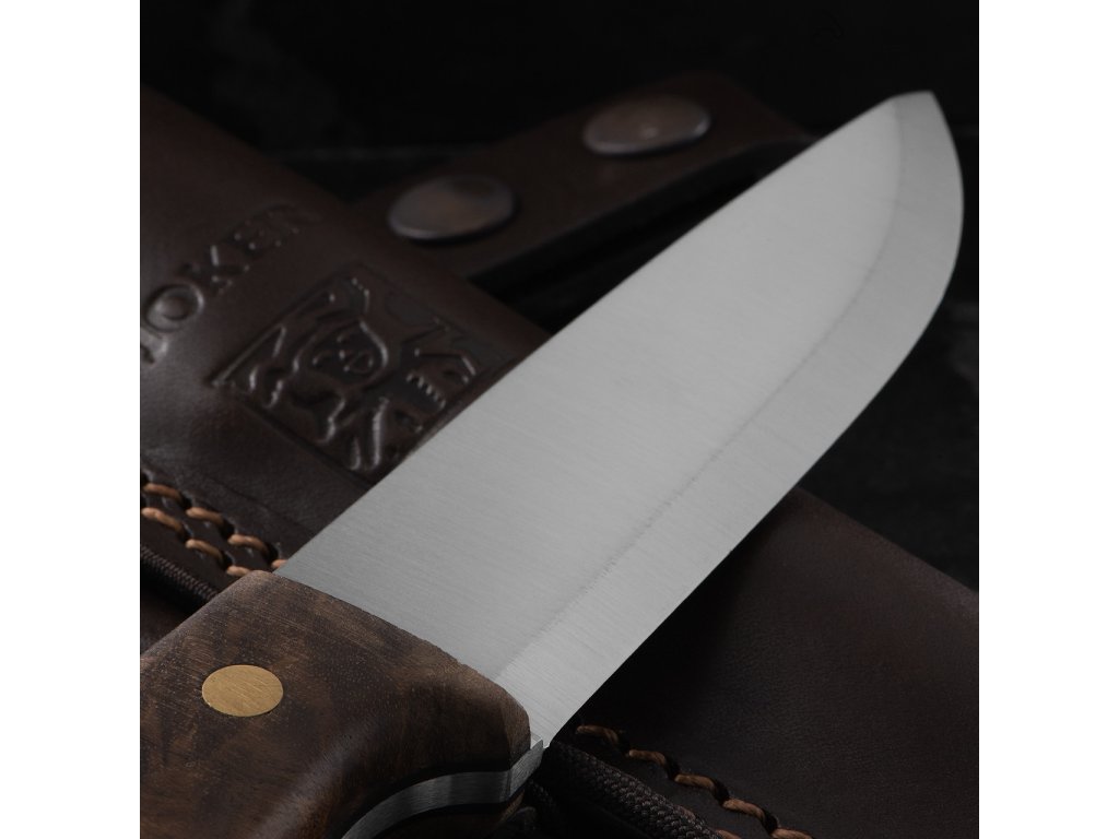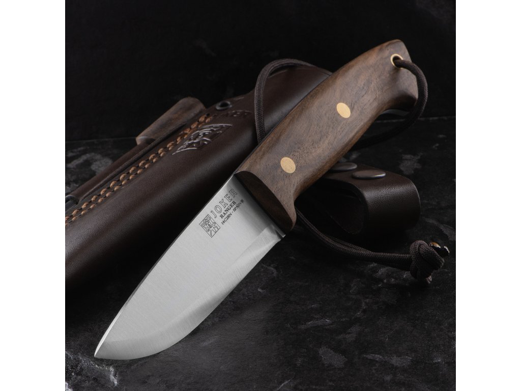 Joker Ranger CN143 🌲 – bushcraftový nôž s orechovou rukoväťou a 11 cm čepeľou z ocele Sandvik 14C28N so scandi výbrusom.