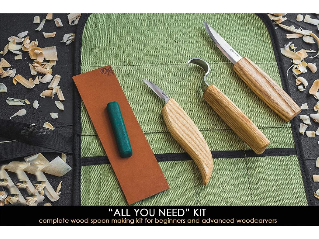 Súprava BeaverCraft S13 je ideálnym riešením pre každého, kto sa chce pustiť do vyrezávania dreva, kuksy, lyžíc alebo misiek. Obsahuje všetko potrebné náradie – tri kvalitné nože z uhlíkovej ocele, brúsne príslušenstvo a praktické látkové puzdro.