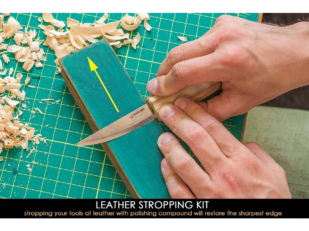 • 🧴 Brúsna koža + zelená pasta – pre dokonalé obťahovanie nožov