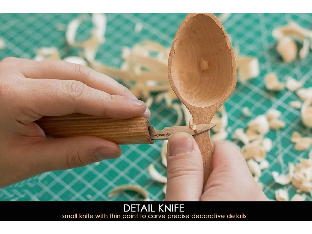 • 🥄 Lyžičkárske nože (Hook Knives) – Nástroje so zahnutou čepeľou na vydlabávanie lyžíc, misiek a kuksy.