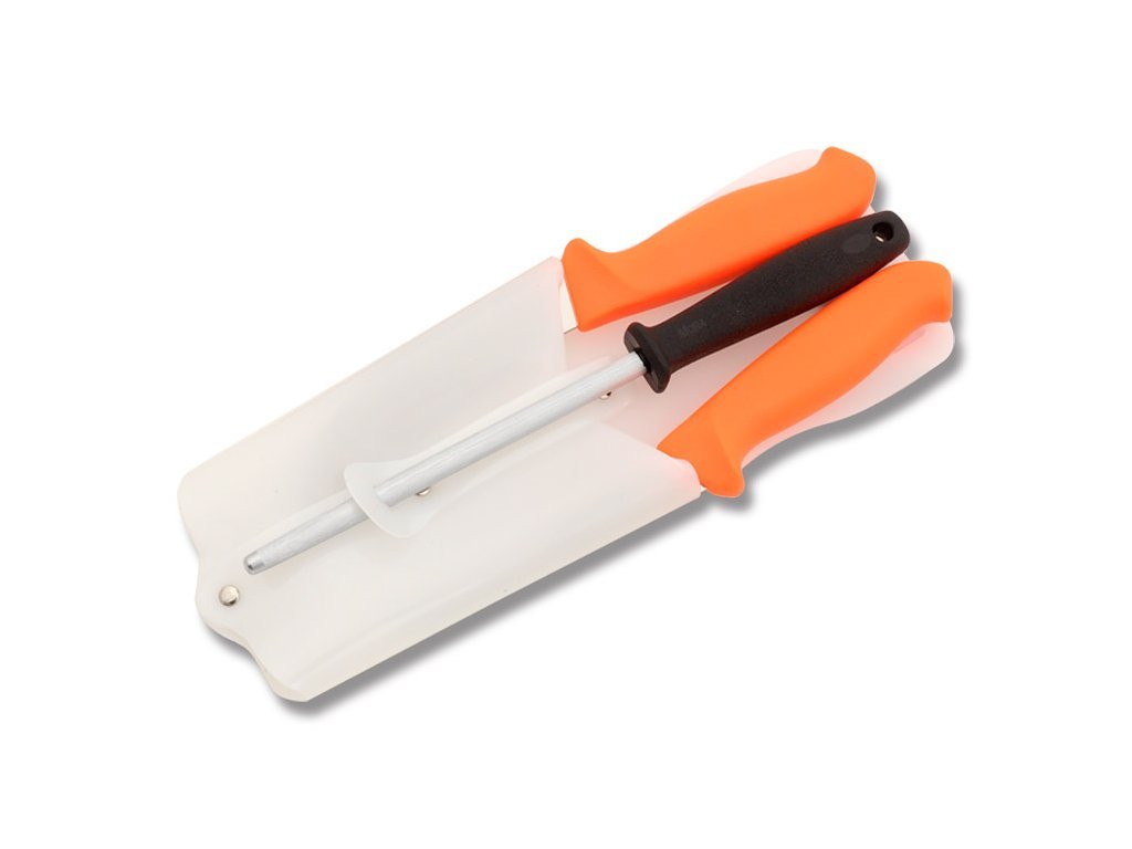 Morakniv Hunting Set 3000 Orange 🦌 – sada dvoch nožov a ocieľky z švédskej nerezovej ocele v oranžovom prevedení. Ideálna na spracovanie mäsa a porcovanie zveri.