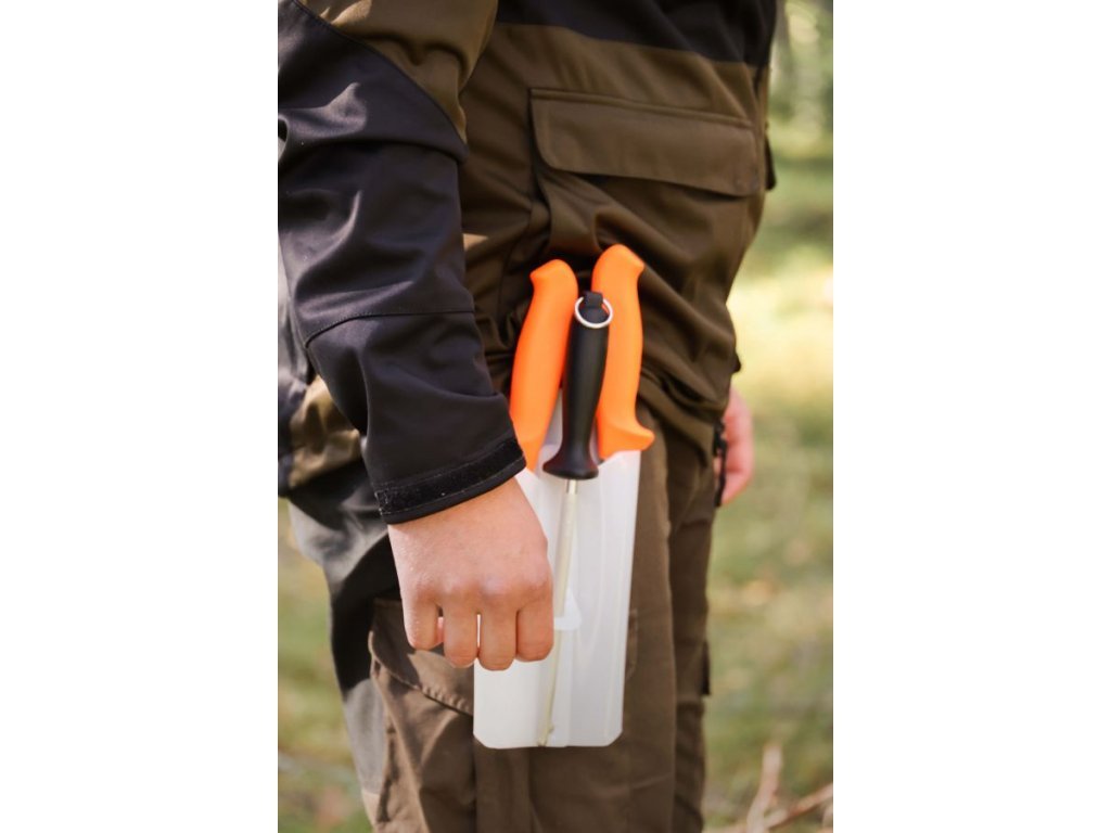 Morakniv Hunting Set 3000 Orange je kompletná sada dvoch nožov a ocieľky, navrhnutá pre efektívne a bezpečné spracovanie zveriny či mäsa. Vyrobená zo švédskej nerezovej ocele SGM® (HRC 57–58), ponúka vysokú ostrosť, odolnosť a jednoduchú údržbu.